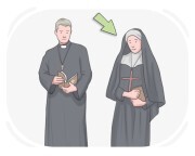 Eine religiöse Person, die in vielen Religionen Rituale durchführt, Gottesdienste leitet und spirituelle Aufgaben innerhalb der Gemeinde übernimmt
