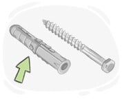 Ein kleiner Kunststoff- oder Holzstopfen, der in die Wand gesteckt wird, um Schrauben zu halten