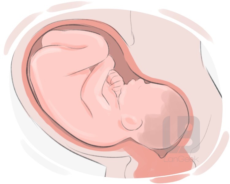 an offspring of a human or animal that is not born yet, particularly a human aged more than eight weeks after conception