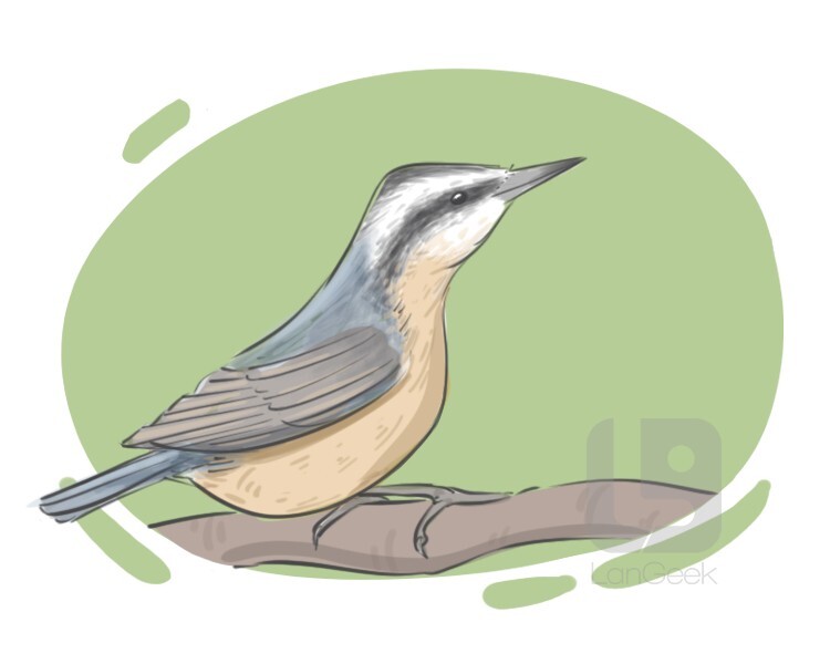 a small songbird with a long bill that climbs up and down tree trunks to feed on insects and nuts