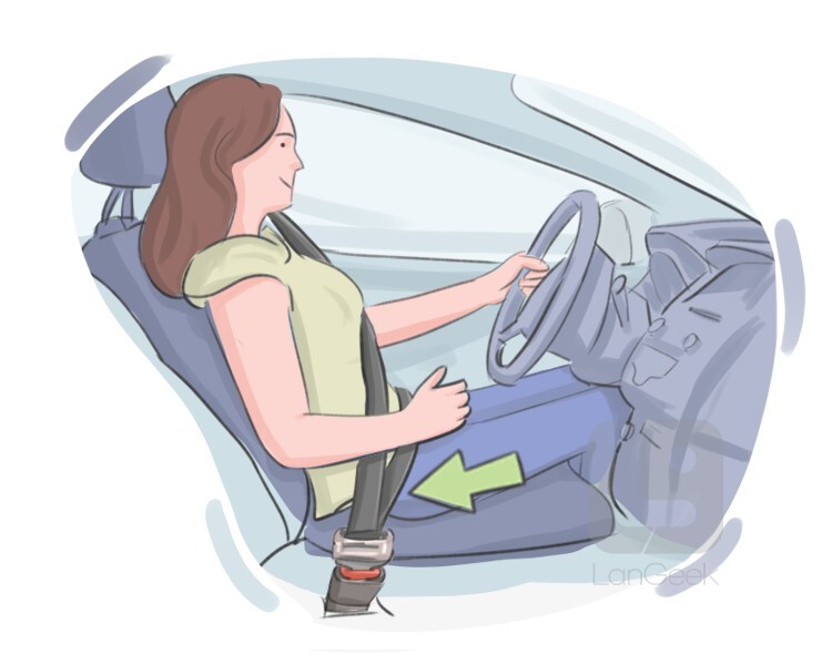 a belt in cars, airplanes, or helicopters that a passenger fastens around themselves to prevent serious injury in case of an accident