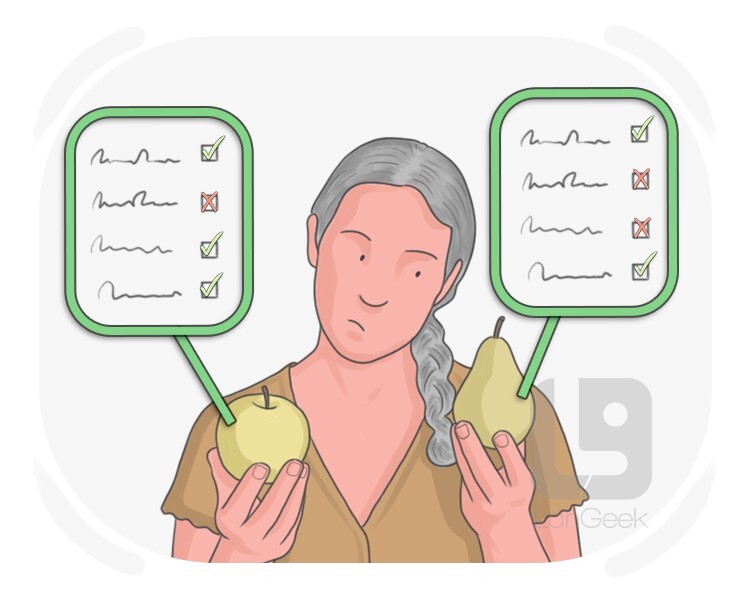 the process of examining the similarities and differences between two or more things or people