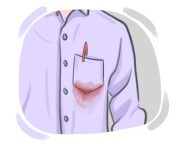 كانت يداه ملطختين بالحبر بعد العمل على الرسم.