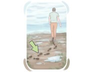لقد دهنت واقي الشمس على بشرتها قبل التوجه إلى الشاطئ، تاركة خطوطًا من البقايا البيضاء.