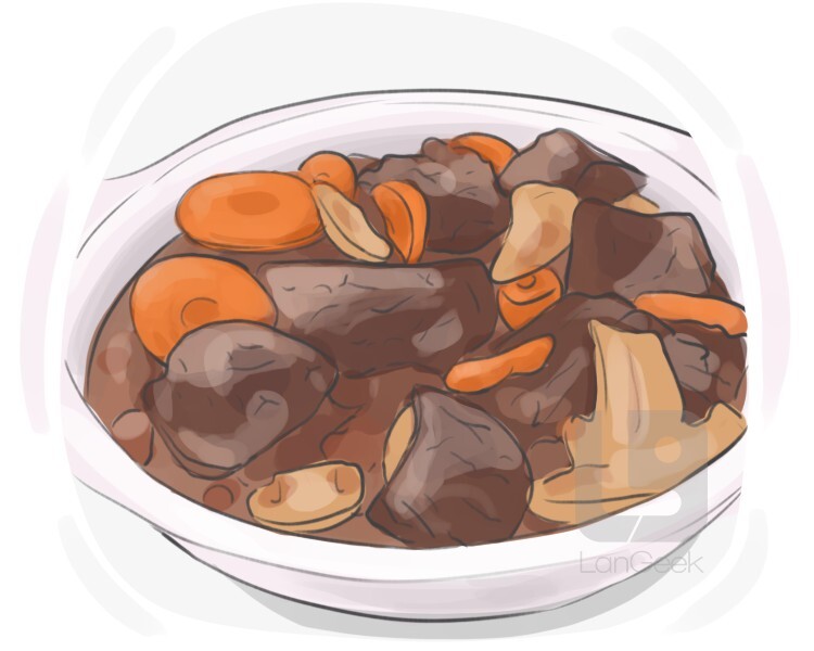 a dish made by combining various ingredients, such as meat, vegetables, and potatoes, in a pot and cooking them together to create a hearty and flavorful stew