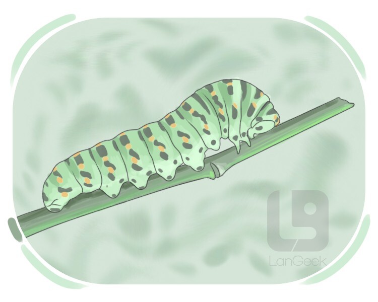 a long and small wormlike larva of a moth or butterfly that has many limbs