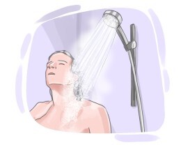 to wash the body using a flow of water from a showerhead
