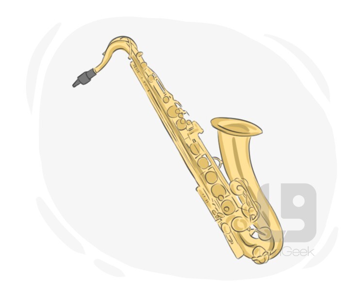 a curved metal wind instrument that is played by blowing into it while pressing its buttons