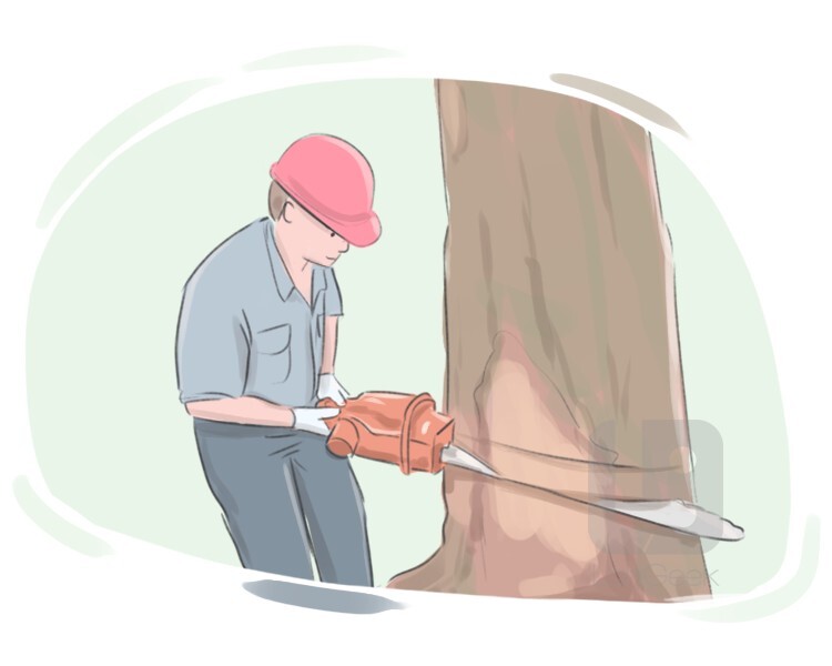 to cut through something at its base in order to make it fall