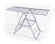 a long narrow table, usually padded and supported by foldable legs, designed to hold clothes flat while they are being ironed