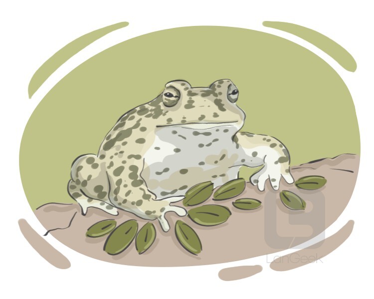 any kind of frog that has a dry leathery skin, which is more terrestrial and has shorter hind limbs