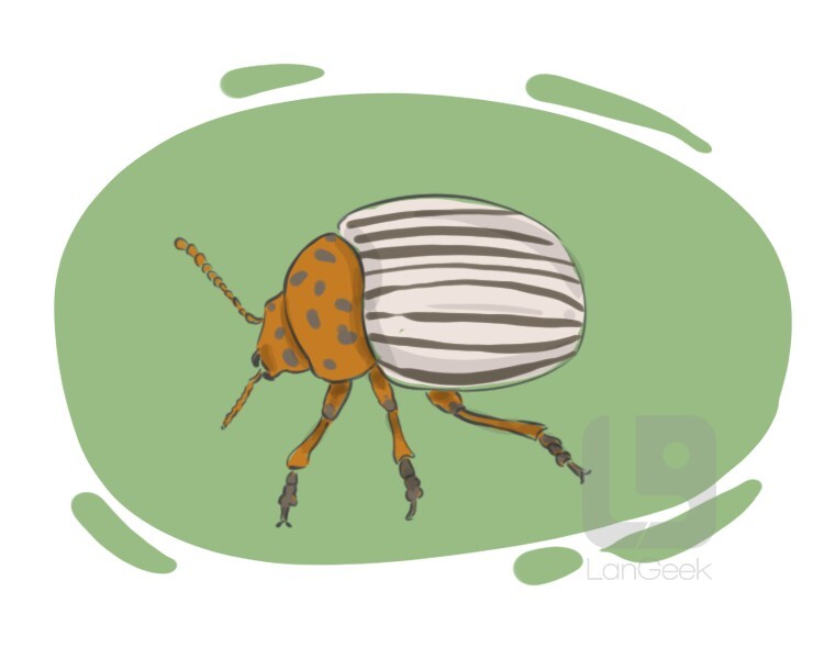 a highly destructive pest that feeds on potato plants, characterized by its distinctive yellow and black striped appearance