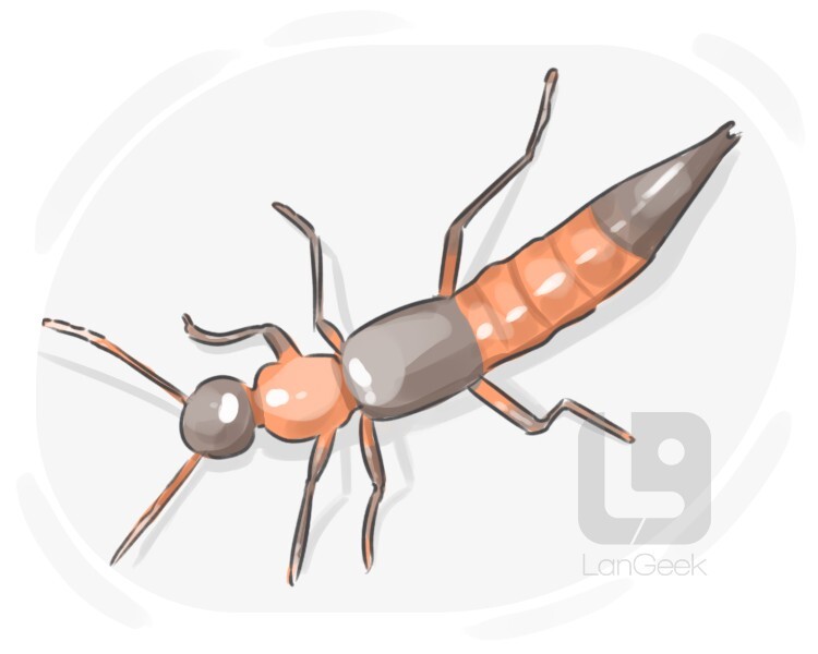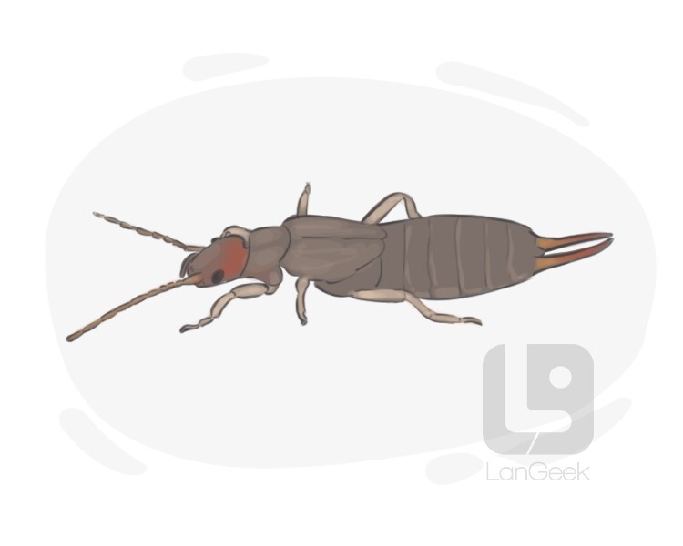 a small brown insect with a pair of pincer-like appendages, the female of which looks after the young until they are grown