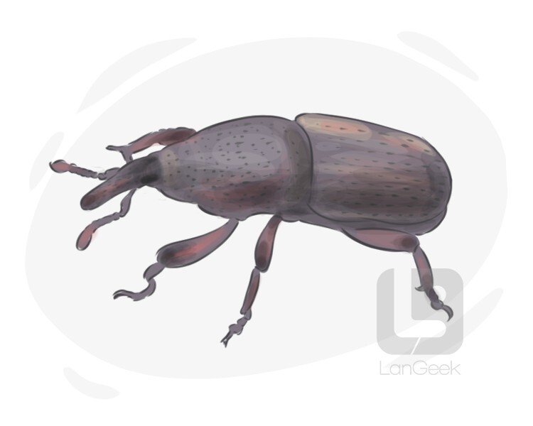 a type of beetle characterized by its elongated snout or rostrum, known for its ability to cause damage to crops and stored grains