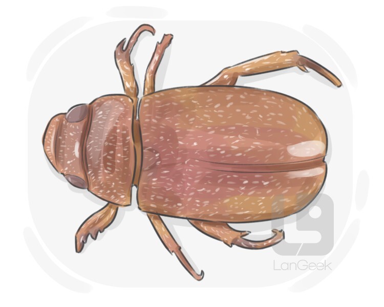 a beetle belonging to the family Melolonthidae, known for its robust build, nocturnal habits, and herbivorous feeding behavior on plants
