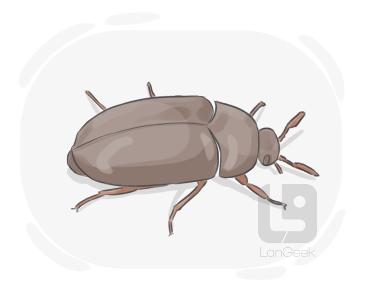 a small, dark-colored beetle known for infesting and damaging various materials, such as carpets and clothing