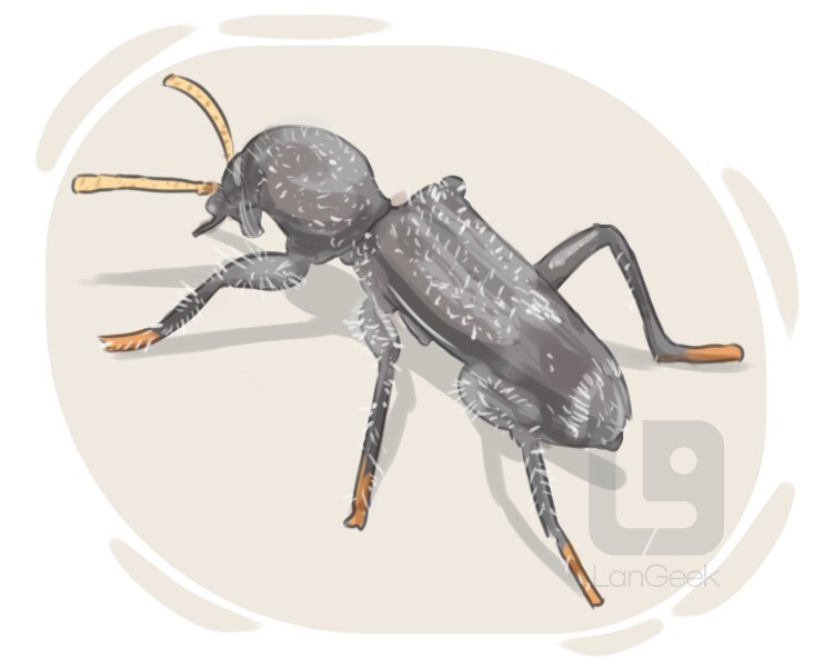 a small predatory insect with an elongated body, short wings, and a tendency to emit defensive secretions when disturbed