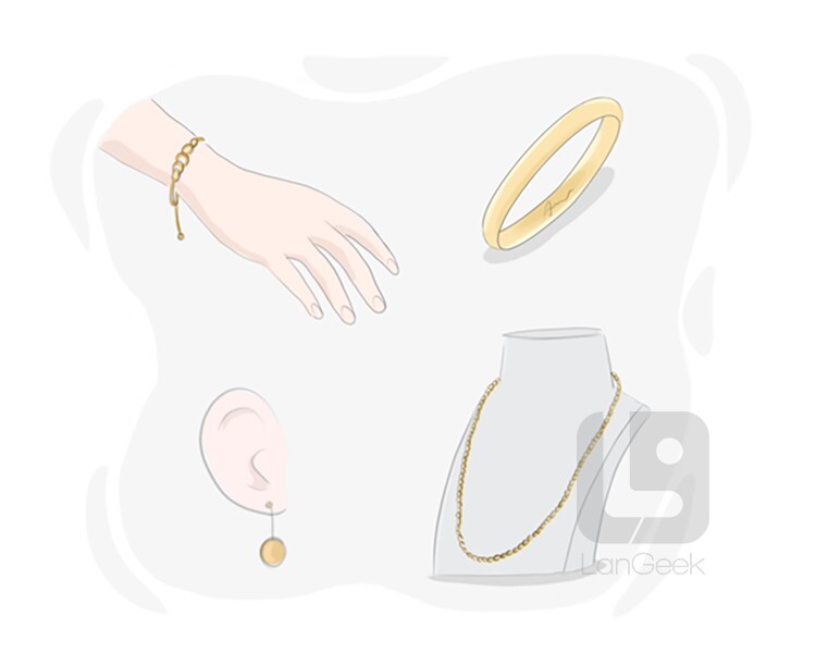 objects such as necklaces, bracelets or rings, typically made from precious metals such as gold and silver, that we wear as decoration