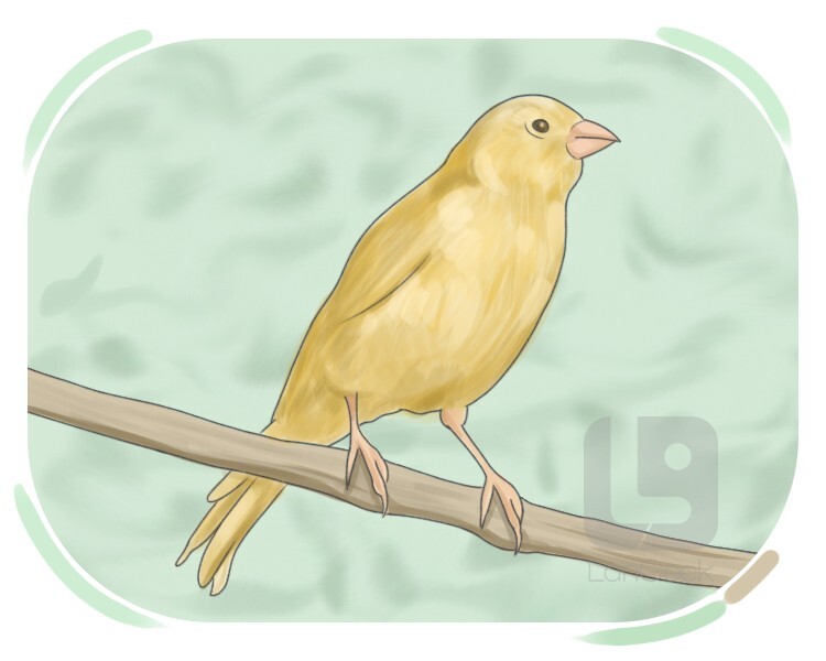 an African songbird of the finch family with yellow feathers, often kept as a pet