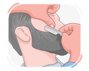 Holič přesně zastřihl okraje klientových vlasů pro čistý a upravený vzhled.