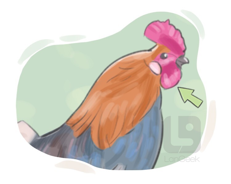 a fleshy, often brightly colored, crest located on top of the head of certain bird species