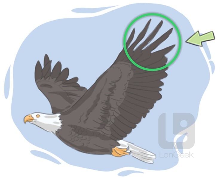 the outermost part of a bird's wing that includes the primary feathers and contributes to the bird's flight maneuverability and stability