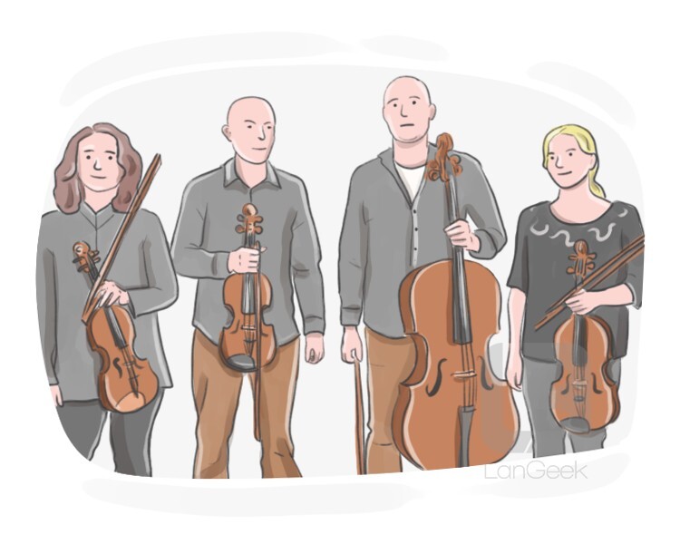a musical composition that is specifically written for two violins, a viola, and a cello, and typically consists of four movements