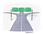 Hlavní silnice se větví do několika menších pruhů v centru města.