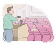 Studenti seřadí své lavice do řad pro prezentaci ve třídě.