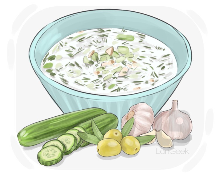 a traditional cold soup or sauce found in many Balkan, Middle Eastern, and Mediterranean cuisines
