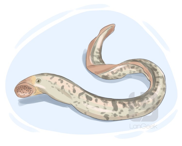 a freshwater eel-like aquatic vertebrate that has a sucking mouth and no jaws, which sucks the blood out of its prey