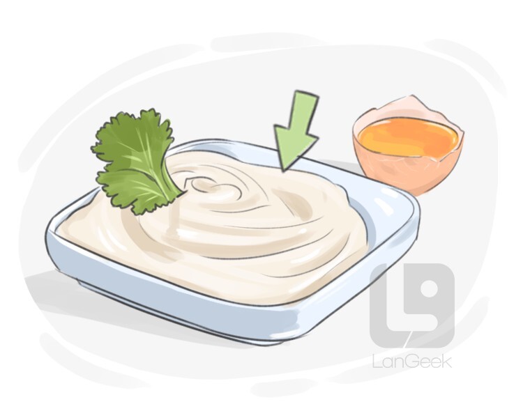 a thick white dressing made with egg yolks, vegetable oil, and vinegar, served cold