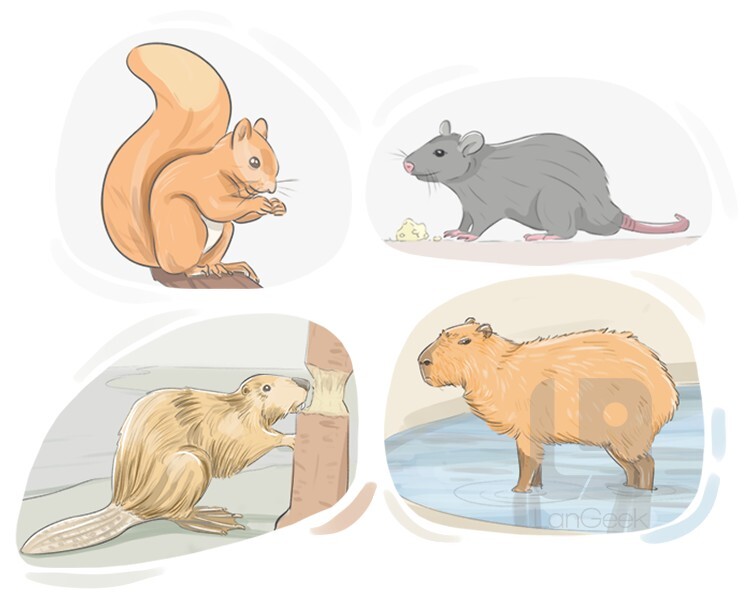 any small mammal with a pair of strong front teeth, such as mice, hamsters, rats, etc.