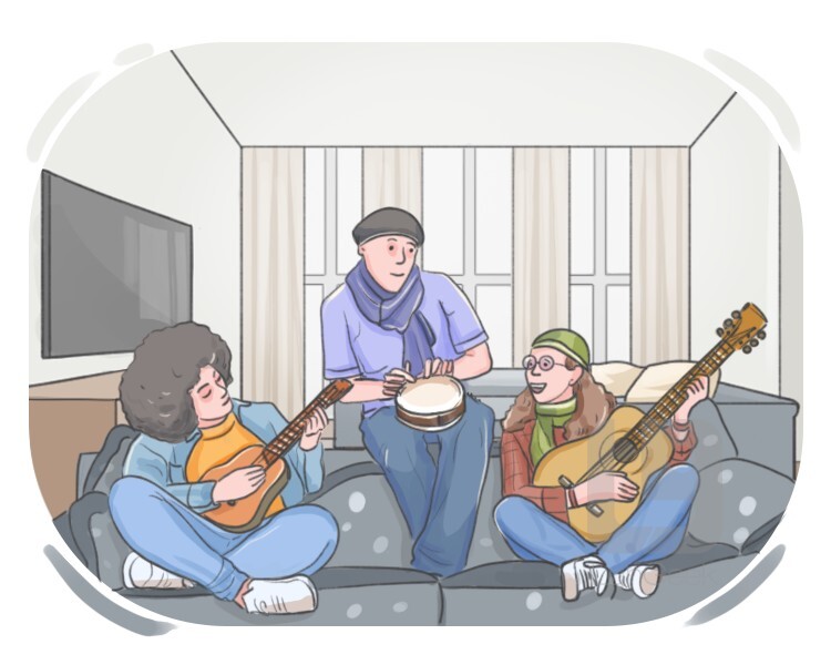 an informal gathering of musicians who come together to play music spontaneously