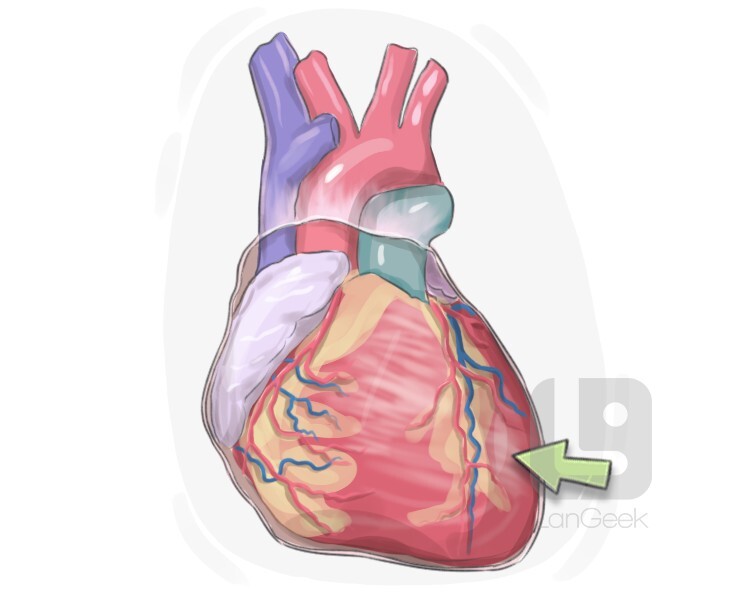 the point where the inferior and left borders of the heart meet, representing the tip of the left ventricle