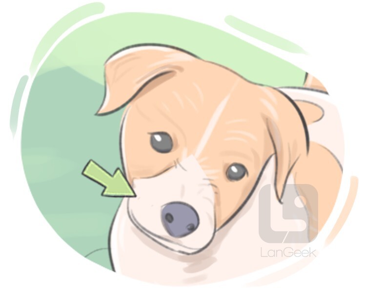 the long and protruding facial part of an animal which comprises its nose and mouth, especially in a mammal