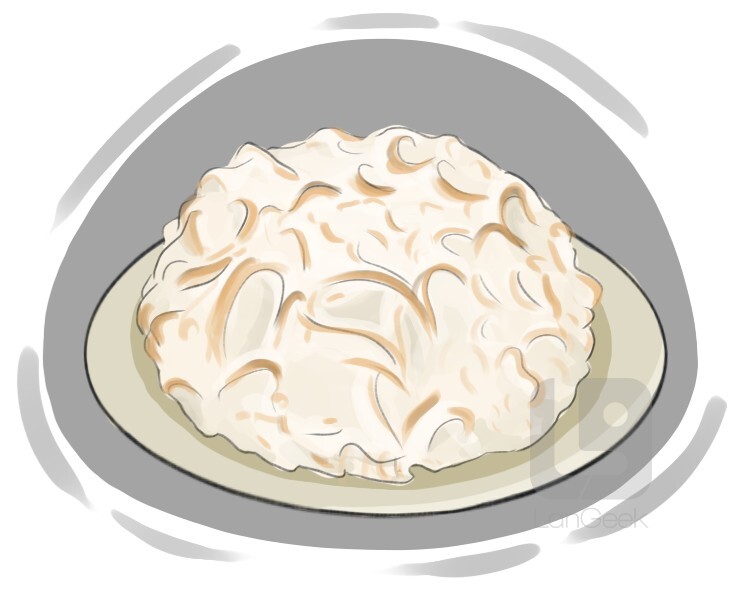 a dessert salad made with cooked rice, whipped cream, marshmallows, and fruit cocktail