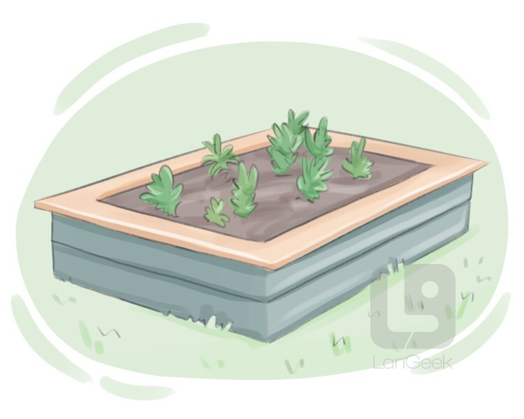 a defined area of soil, typically raised and enclosed, that is used for planting and growing plants