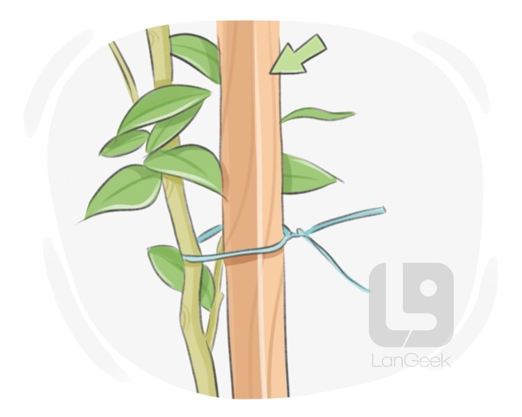 a long, thin, pointed rod, usually made of wood or metal, that is used to support and train plants, such as tomato plants or climbing vines, to grow in a certain direction or stay upright