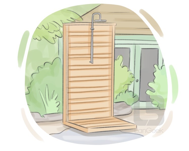 a plumbing fixture designed for use outdoors, typically found in gardens, near pools, or in beach houses, that allows people to shower outside, often using natural light and air