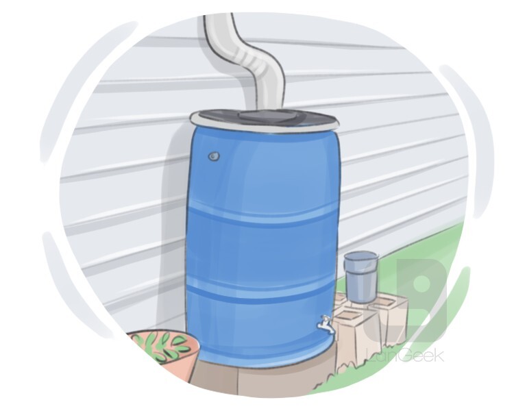 a large outdoor container that can collect and store rainwater running off rooftops