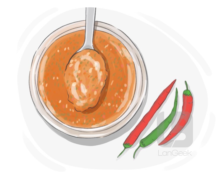 a spicy and flavorful condiment made from chili peppers, vinegar, and various seasonings