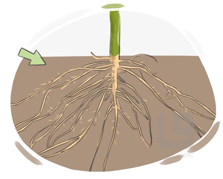 the underground part of a plant that absorbs water and minerals, sending it to other parts