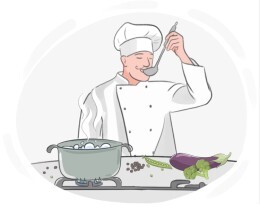 Ella prueba las hierbas sabrosas en su sopa casera.