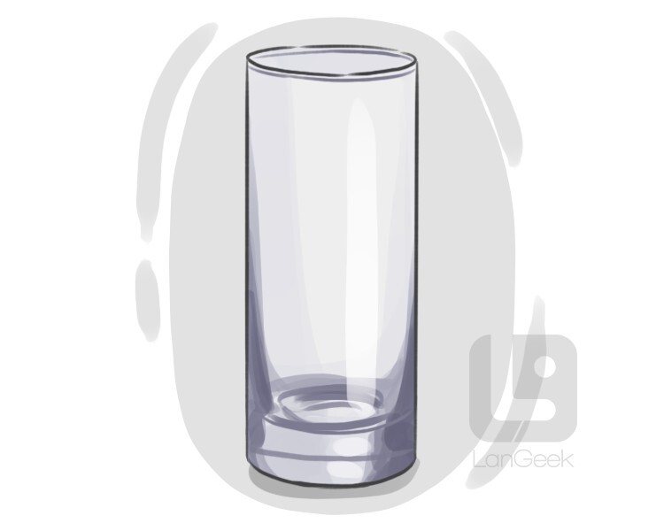 a tall, narrow glass that typically holds between 10 and 14 ounces of liquid, and is used for serving mixed drinks such as the Tom Collins