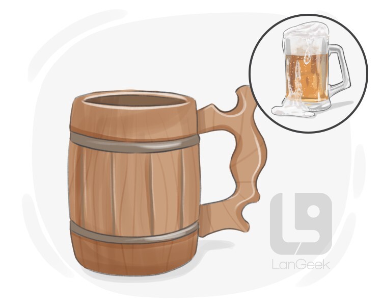 a large, typically cylindrical drinking vessel with a handle, traditionally made of metal, wood, or ceramic, often used for serving beer or ale