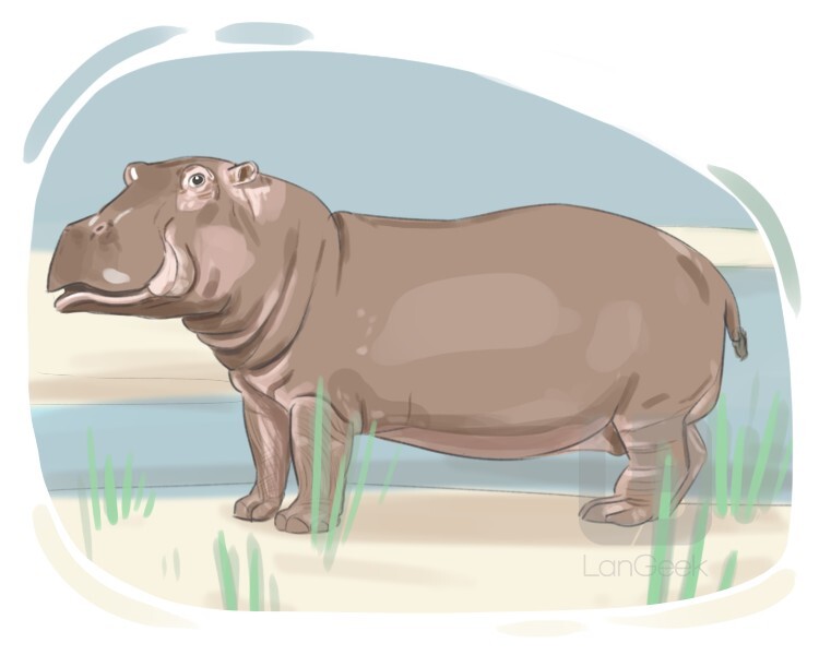 a large African mammal with a thick gray skin, big jaws and tusks that lives near water