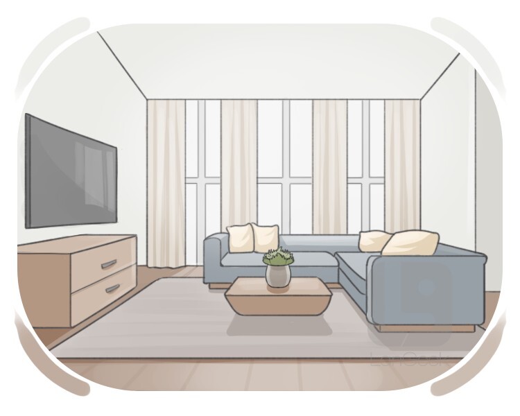 living room; a room in a house where people can sit, relax and watch television or talk together