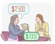 او پول را برای لباس جدیدی که میخواست بخرد تحویل داد.