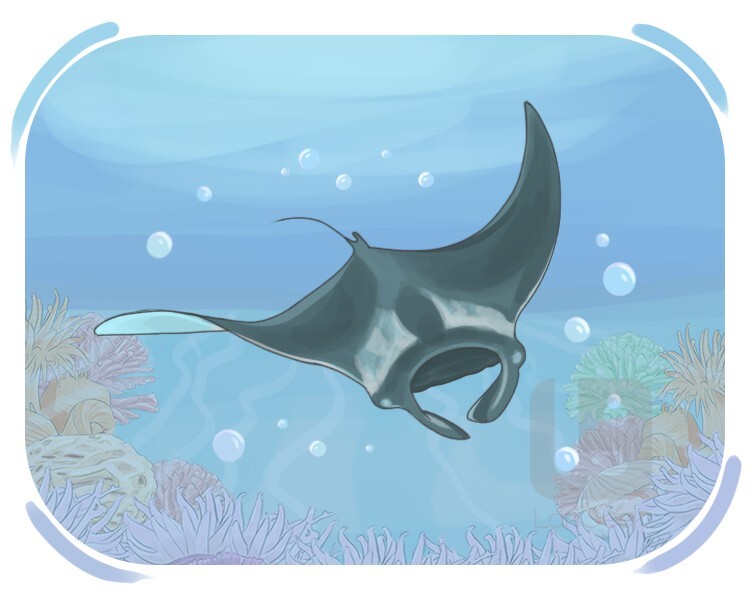 a flat-bodied marine cartilaginous fish with eyes on the upper surface, swimming primarily using large, wing-like pectoral fins